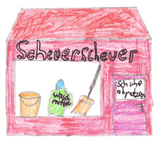 Der Putzladen SCHEUERSCHEUER schließt eine wichtige Lücke in KÖNNsWELT. Nicht so, das die Stadt nicht vorher schon bemüht war, alles stets rein zu halten, aber die Reinigungsmittel, Behälter, Tücher, Lappen, Besen, Kehrbleche und und und mussten in einer anderen Stadt besorgt werden.